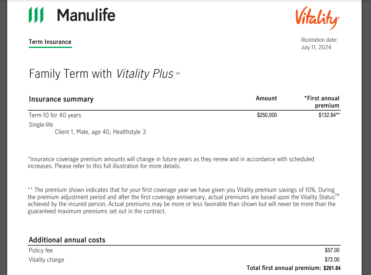 今天总结一下Manulife Term with Vitality Plus的各年龄的保费分别都需要多少钱。