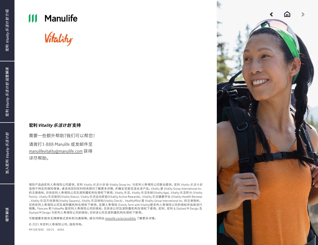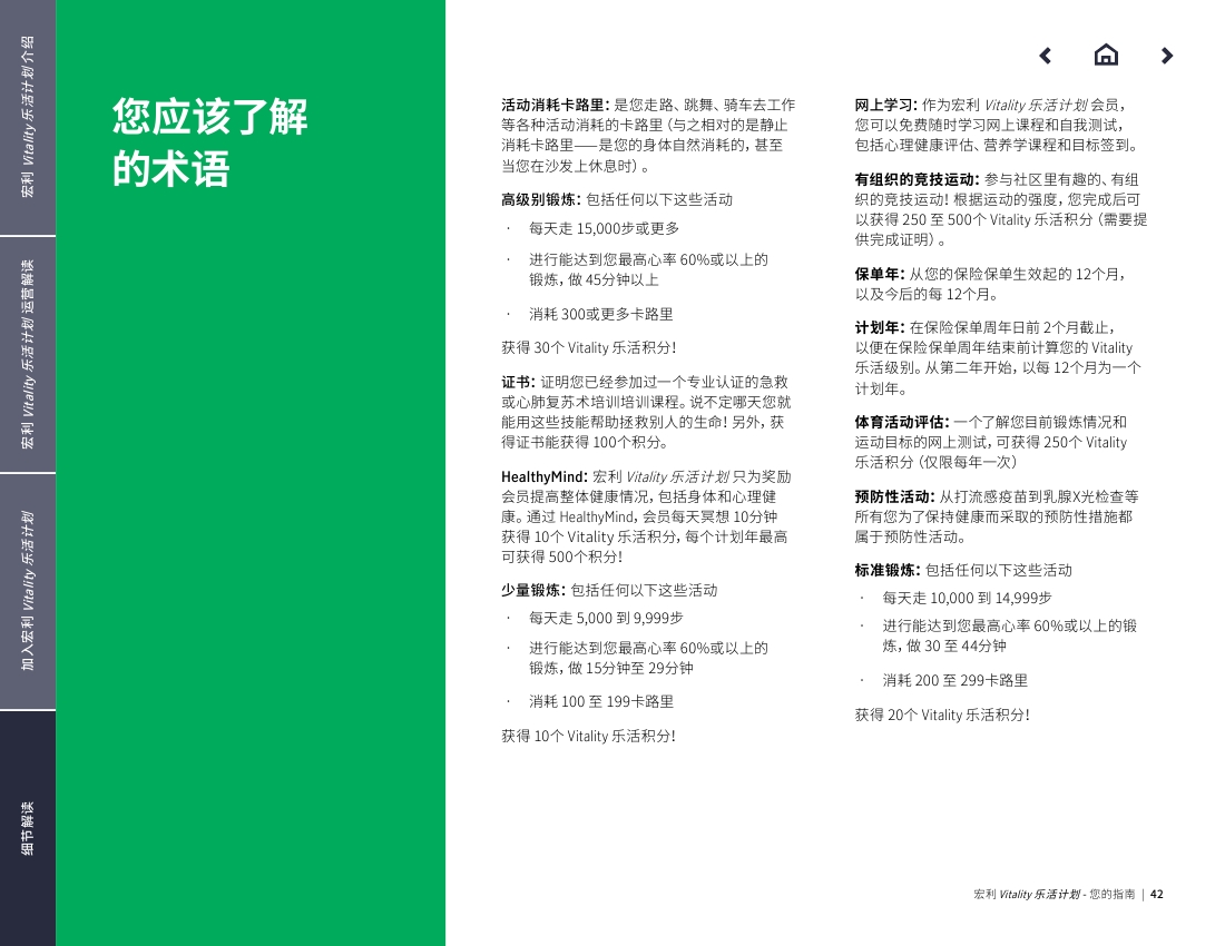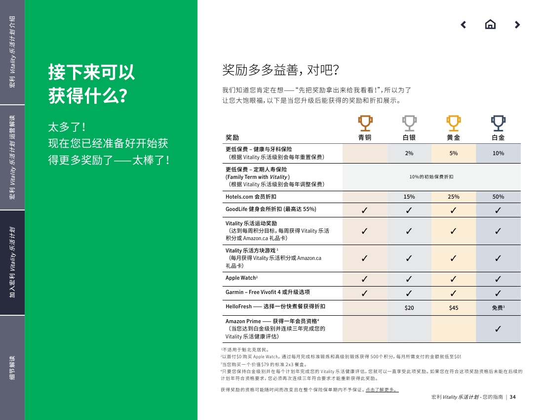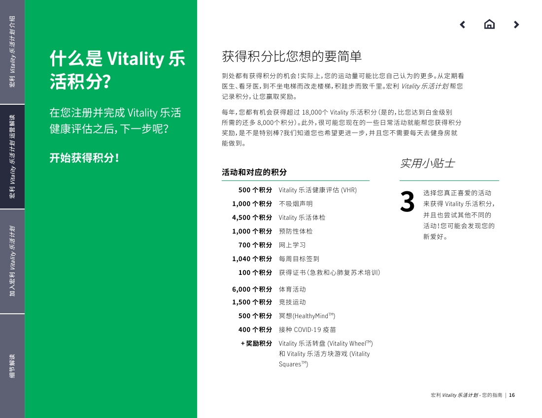 下面图片内容是Manulife Vitality 官方中文指南 .